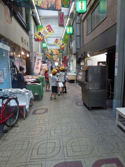 ↑10月9日(木)阿倍野王子商店街・王子商店街へ見学に行きました。グループに分かれ、お店の方や買い物に来ているお客さんにインタビューをしたり、お客さんに来てもらうために商店街全体で取り組んでいることを調べたりしました。