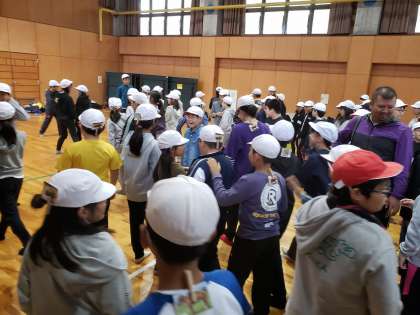 多目的ホールでプロジェクトワイルドという動物ゲームをしています。