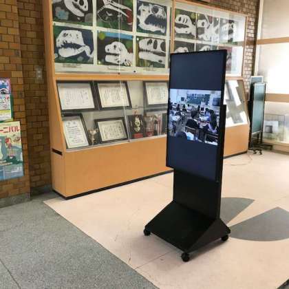 阪南小学校の玄関にデジタルサイネージを設置しました。