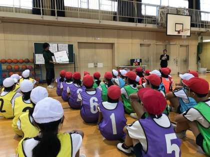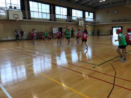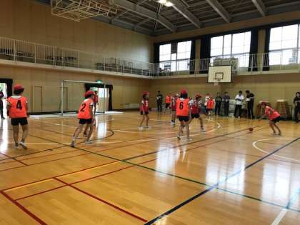 6年生が体育科の学習で、ゴール型「ハンドボール」に取り組んでいます。