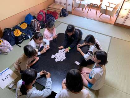 避難訓練を終え、それぞれの部屋の生活班メンバーで、思い思いに過ごしています。