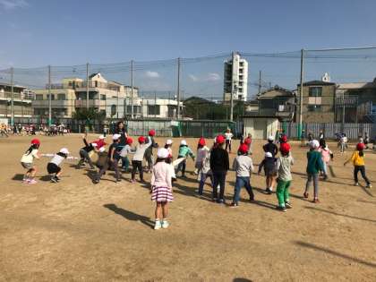 子ども達は元気に運動場で遊んでいます。