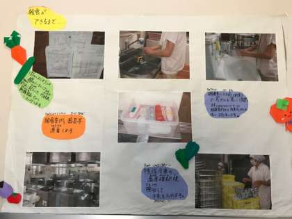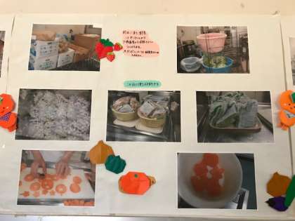 みなさんが学習している間に、給食室では写真のような作業をしています。