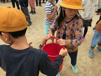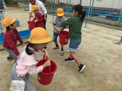 バケツリレーもしました!
