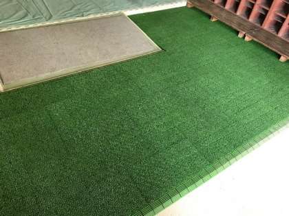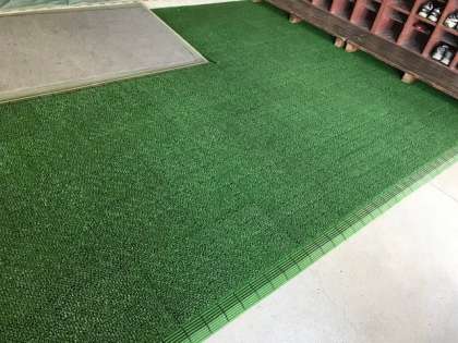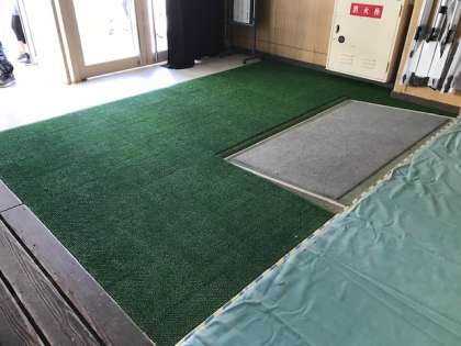 講堂の床改修が行われたこともあり、講堂入り口で靴の汚れをしっかりとふき取ることができるように、グリーンマットを敷き詰めました。