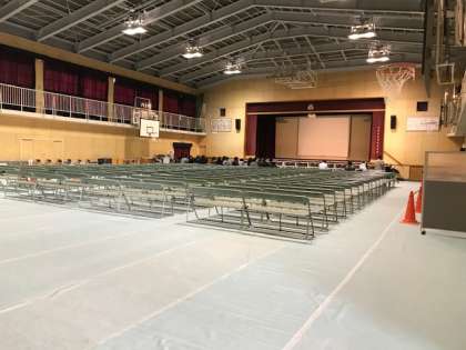 また、混雑解消のため下靴のままお入りいただけるよう、講堂内にシートを敷くスタイルに変更いたしました。