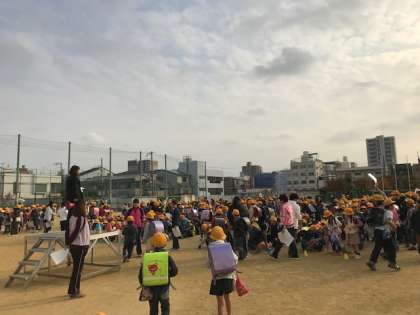 自分のブロックに並んで、同じ方向に帰るお友達と一緒に並びます。