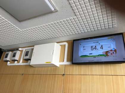 それを測る指標となるモニターが、講堂入り口に設置されました。