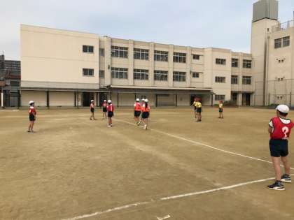 5年生が体育科の学習で「タグラグビー」をしていました。