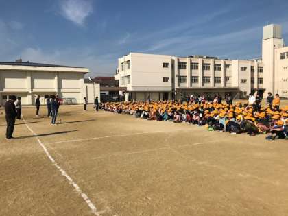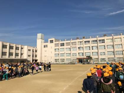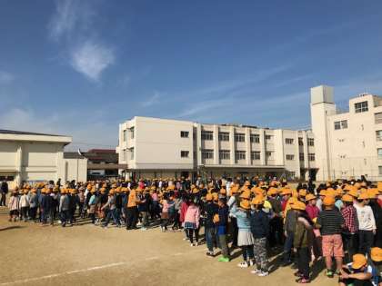 地震が発生した時は、まずは運動場に集まります。