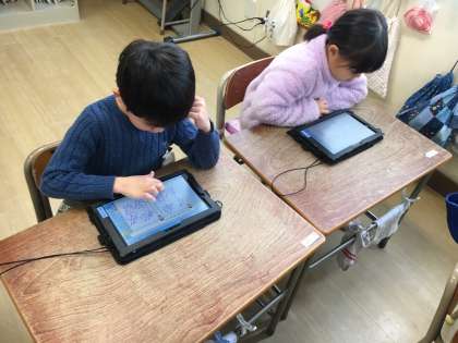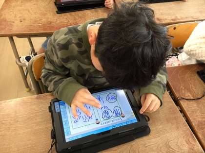 今回は、タブレットを使ってたくさんある棒の図を数えやすいように10のまとまりにする学習をしました。