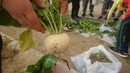 栽培委員会では、委員会活動で、大根、かぶ、ブロッコリーを栽培していました。