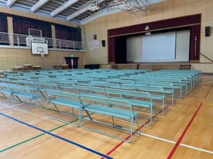 多くの方にお座りいただけるように、イスもたくさん準備しておりました。