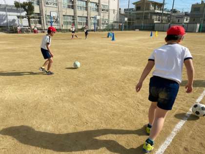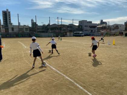 ボールが動かないように、素早く左右の足でボールをコントロールしています。