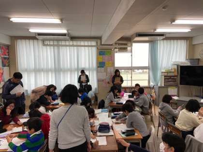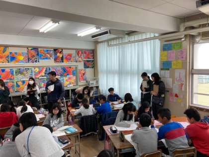 作品の魅力を伝えるために、グループで話し合っているところです。