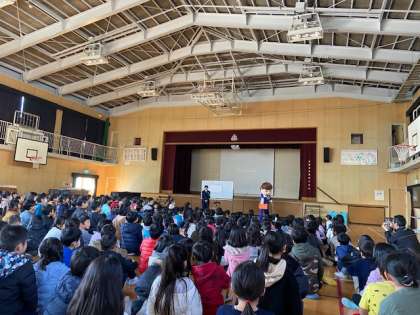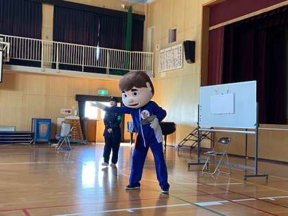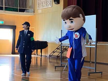 阪南小学校の講堂で、警察の方による「誘拐防止教室」が開かれました。