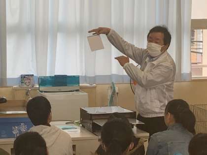 京セラドキュメントソリューションの方が、来てくださり、電気を利用したコピーの仕組みを学習しました。