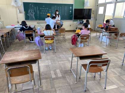 分散登校した後は、教室で担任の先生と一緒に学習です。