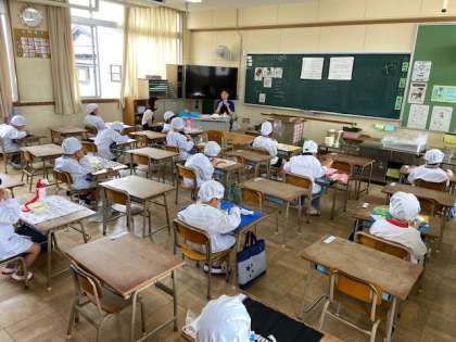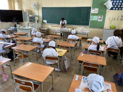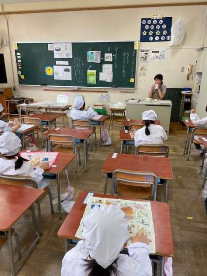 いつもの給食とは少し違って、パン、牛乳、おかず1品になりますが、おいしそうに食べている様子が見られました。
