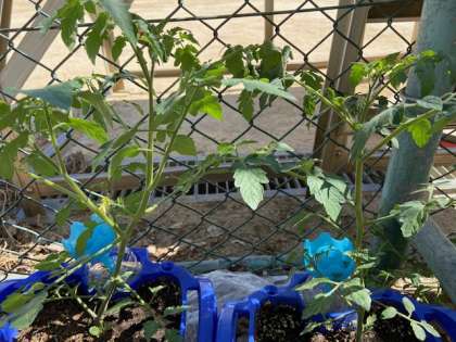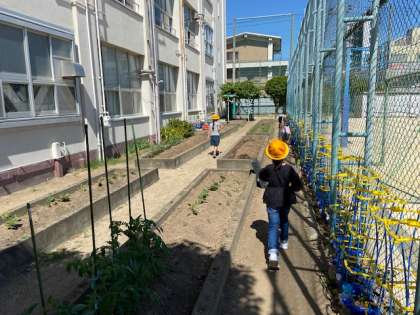 2年生が活科で育てている「トマト」の水やりをしていました。