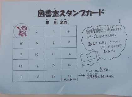 阪南小学校の図書館には「図書室スタンプカード」があります。図書館開放へ参加すると、スタンプがもらえます。