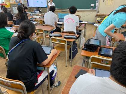 阪南小学校でも、少しずつ双方向型の機能を使えるように研修を進めて準備をしています。