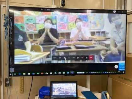パソコンとカメラがあると、このように離れた教室(場所)にいても、話をすることができます。