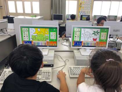 2年生の生活科ではパソコン室に行き、マウスの操作の練習をしています。