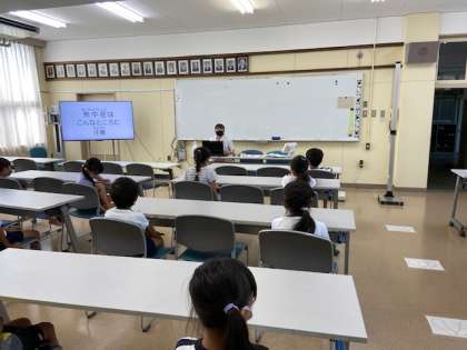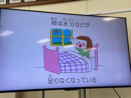 発育測定が始まる前に、養護教諭から「熱中症」についての学習がありました。