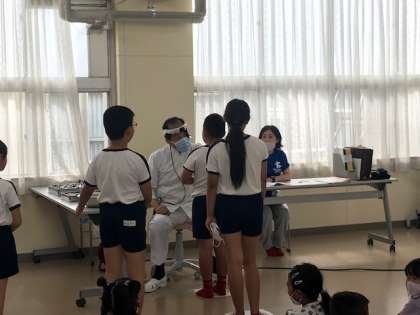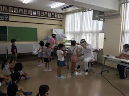 子どもたちは待っている間、検診の様子をしっかりと見て、自分の番が来ても戸惑うことなくスムーズに行うことができました。