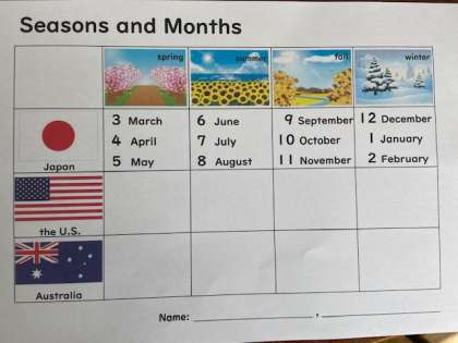 日本、アメリカ、オーストラリアの季節と月を考えました。