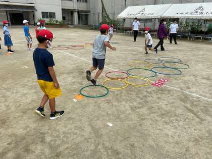今回は「フラフープ」を使って、ケンパ跳びです!