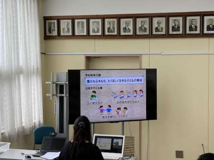 最後に、教頭よりプレゼンテーション形式での学校説明会及び質問を受け付けました。