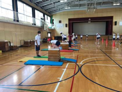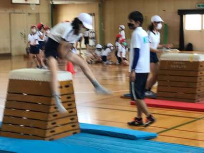 9月15日(火)に阿倍野区子ども体力向上事業の方に来ていただき、とび箱を指導をしていただきました。