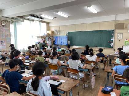 その後、担任の先生と支援員さんにサポートしてもらいながら、デジタルドリル「やるKey」にチャレンジです。