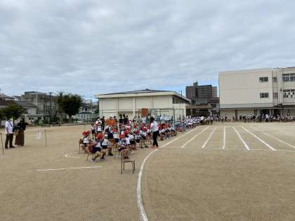 イスを運んで、ソーシャルディスタンスを守りながら自分の場所に到着です。