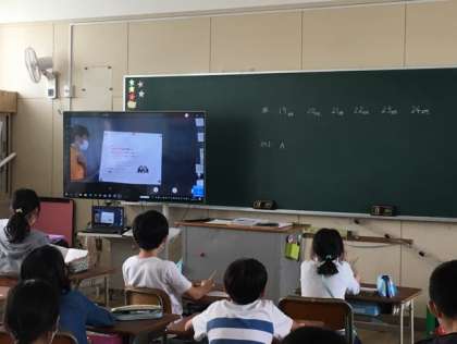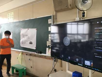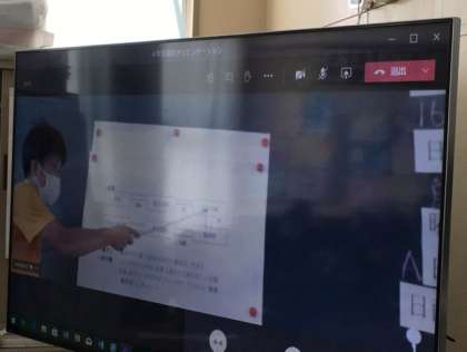 感染拡大をさけるため、学年みんなで集まるのではなく、各教室でTeams(双方向通信)を使って行いました。