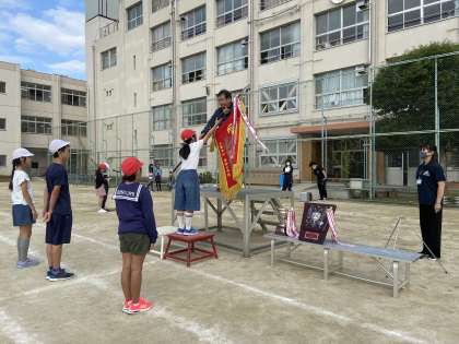そこで、閉会式は代休明けの火曜日の朝に「テレビ中継」で行いました。