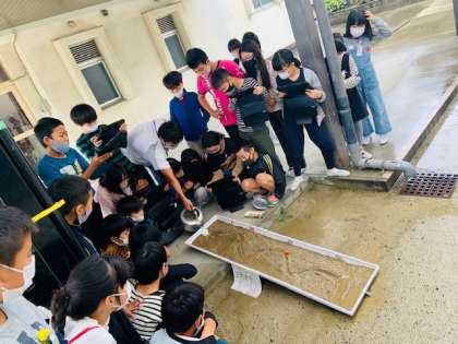 理科「流れる水の働き」では、さまざまな実験が行われています。