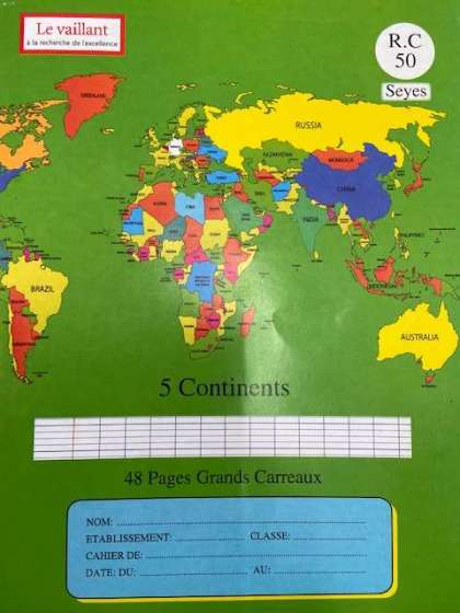 このノートはカメルーンの子どもたちが使用しているもの(表紙と裏面)です。