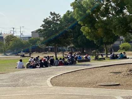 心地よい日差しの中、子ども達はご飯を楽しみます!