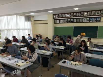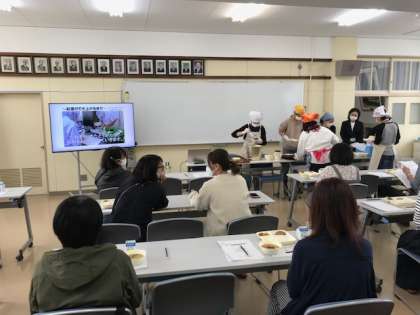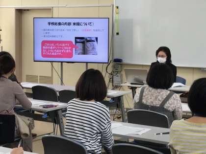 学校給食について、栄養教諭から講話もあり、学びながら試食していただきました。
