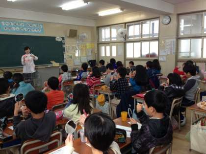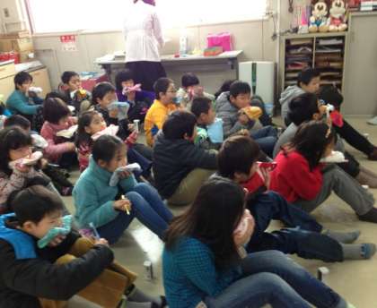 最初の30分は、歯の大切さについて考え、その後、フッ化物塗布をしました。
