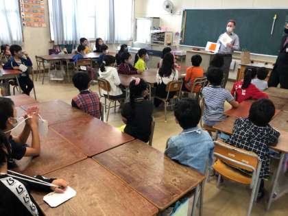 「今から日本語は話しません。」と言われたときは、子どもたちは驚いて不安そうな顔をしていましたが、授業が進むにつれてどんどん英語が分かってきたようで、楽しそうにゲームやスタンプラリーに参加していました。