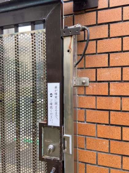 保護者・地域の皆さん等がご来校されたときに使用する「正門通用門ドアストッパーの交換」です。