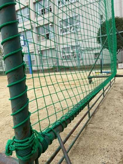 さらに、穴が空いていたり、破れていた「防球ネットの補修」です。