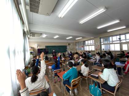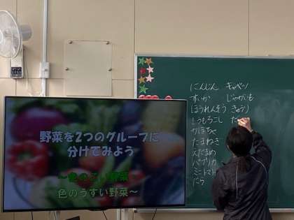 野菜を2つに分けてみよう!では、たくさんの手が挙がっていました!
