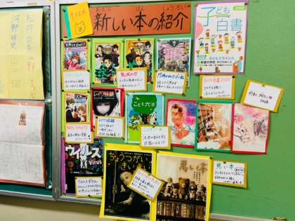 図書室に、新しい本がたくさん入りました。今話題の「鬼滅の刃 ノベライズ」やテレビで放送されている「胸キュンスカッと」、ツイッターで話題となり、35万部を突破するほど大人気の「100日後に死ぬワニ」など、子どもたちの目がキラキラ光るような本がたくさんあります。ぜひ借りに来てくださいね。