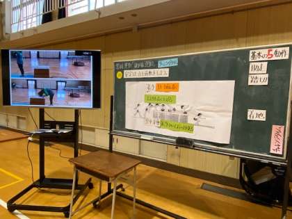 担任の先生が実際に行っている「動画」を大型テレビを使って見比べました。