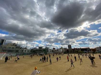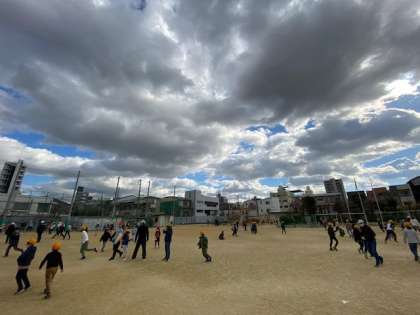 寒さに負けずに、こんなにもたくさんの子どもたちが運動場に!!